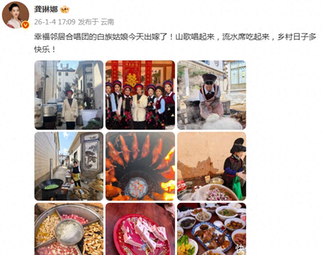 谁说五十岁就得安静养老?龚琳娜在云南乡村的一场白族婚礼上,直接笑出一脸青春感。1日,她发了组照片,配文“山歌唱起来,流水席吃起来”,字里行间全是自在和开心。
